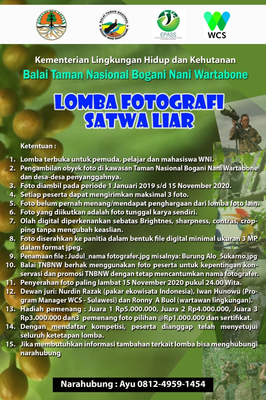 10. Balai TNBNW berhak menggunakan foto-foto peserta untuk kepentingan konservasi dan promosi TNBNW dengan tetap mencantumkan nama fotografer.